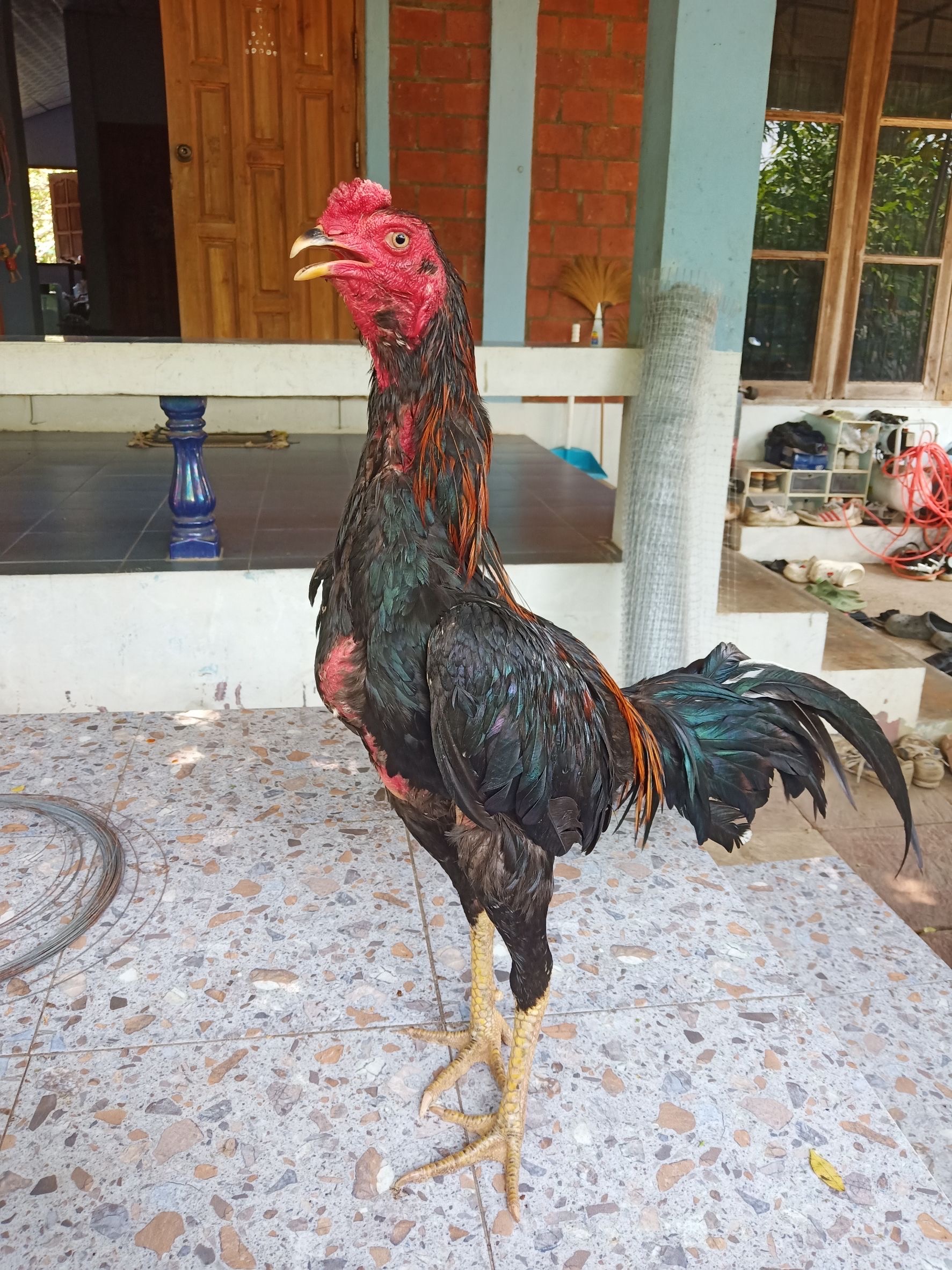 ไก่เชิงหนุ่ม อายุ 10 เดือน เตะครั้งแรก น้ำหนัก 2.3 ยังไม่เต็มโครง ขนปีกมีหัก 1200 รวมส่ง ยกเว้นภาคใต้ครับ สนใจติดต่อสอบถามได้ครับ